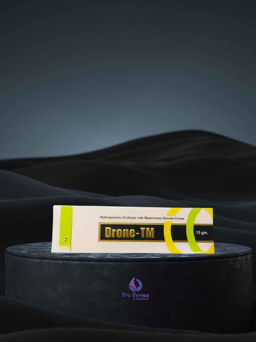 Drone-TM Cream is specially formulated to address melasma and stubborn pigmentation caused by sun exposure, hormonal changes, and acne marks. The cream works by helping regulate excess melanin production while nourishing the skin barrier. With consistent application, Drone-TM Cream helps fade dark patches, improve skin clarity, and restore a more even, radiant complexion.