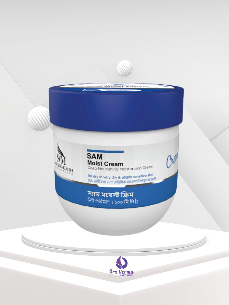 SAM Moist Cream is a dermatologist-formulated moisturizer created to provide deep hydration and skin barrier support. Its nourishing cream texture helps relieve dryness, tightness, and skin discomfort by locking in moisture and protecting the skin from environmental stress.